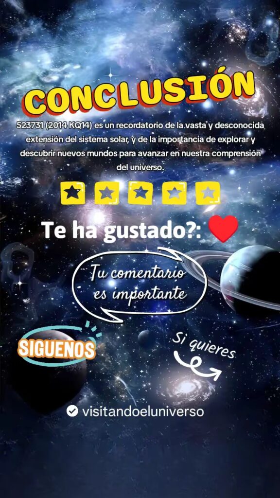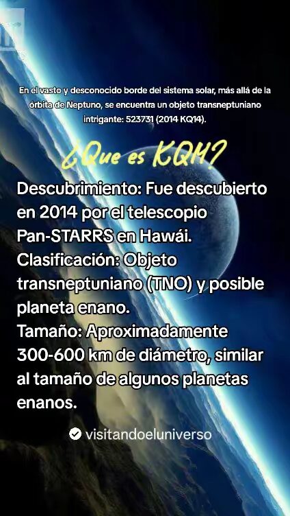 En el vasto universo al borde de nuestro sistema solar, mas alla de la orbita de Neptuno, se encuentra un «objeto transneptuniano» intrigante, el objeto denominado: 523731 (2014 KQ14).