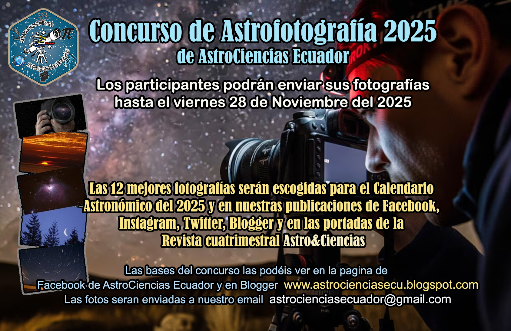AstroCiencias Ecuador quiere anunciar el concurso de fotos para el Calendario Astronómico y nuestras publicaciones 2026.