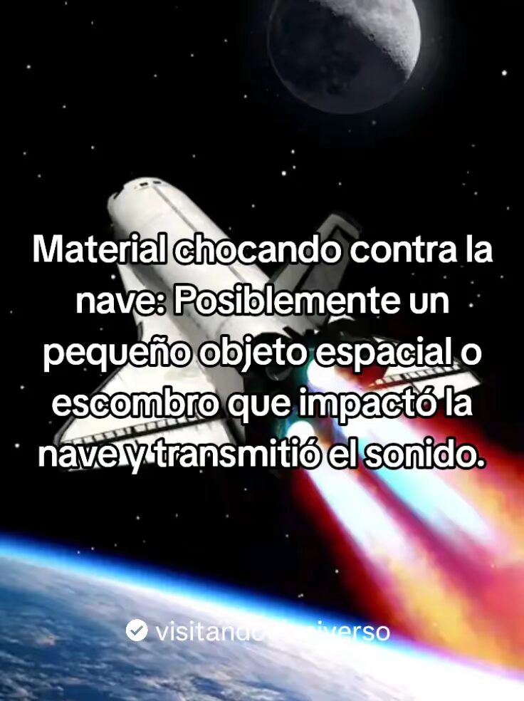 - Material chocando contra la nave: Es posible que un objeto espacial de pequeña escala, chocara contra la nave, algún tipo de escombro que transmitió el sonido.