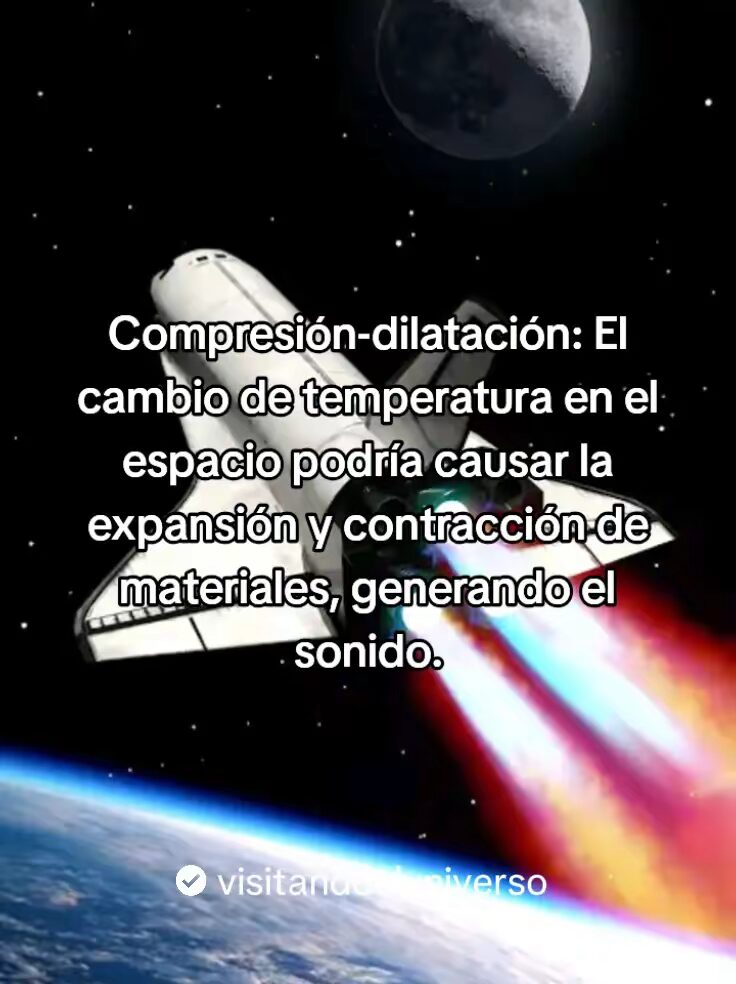 - Compresion-dilatacion: Los cambios de temperatura también podrían ser un factor a valorar, ya que los cambios de temperatura en el espacio podrían causar la expansión y contracción de algunos materiales generando el sonido.