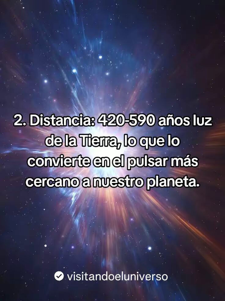 - Su distancia se encuentra entre 420-590 años luz de la tierra, lo que la convierte en el pulsar mas cercano a nuestro planeta.