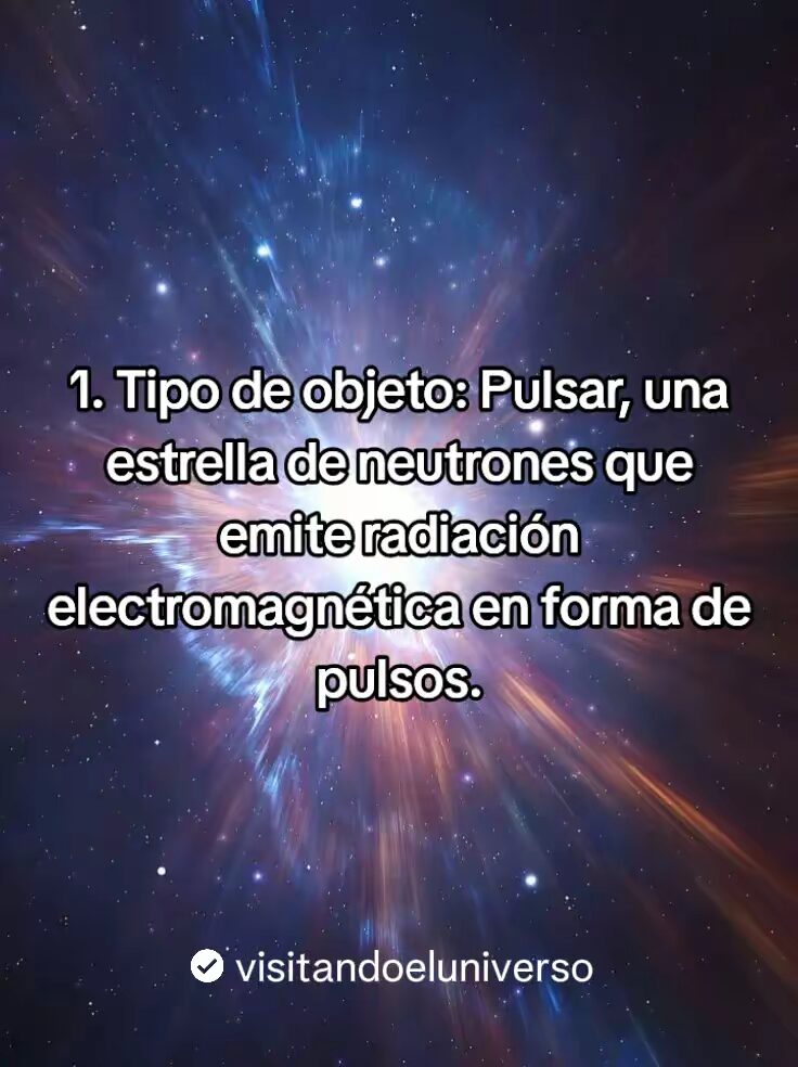 - El tipo de objeto es: Pulsar, una estrella de neutrones que emite radiación electromagnetica en forma de pulsos.