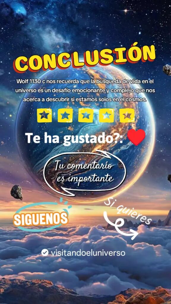 Conclusiones: Wolf 1130 C, nos recuerda que en el vasto universo existen altas posibilidades de vida, habiendo planetas y lugares en el cosmos que son un reflejo de la tierra y nuestro espacio cosmico.