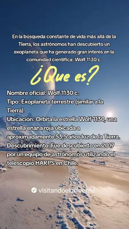 En el planeta tierra los seres humanos desde hace cientos de años, buscamos vida fuera de nuestro sistema solar y al parecer hemos encontrado otra huella la cual podia ser la idonea para ella. El exoplaneta denominado Wolf 1130 c.