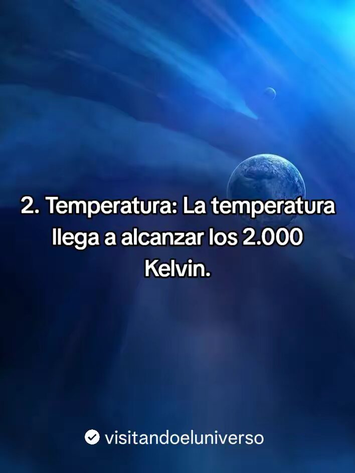 - Su temperatura llega alcanzar los 2.000 Kelvin.