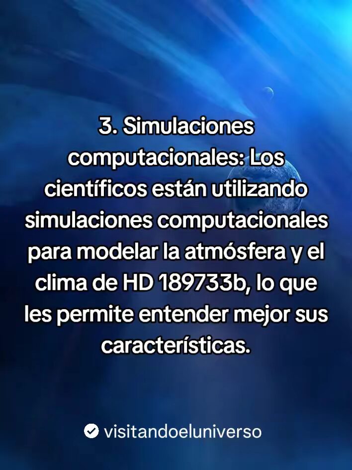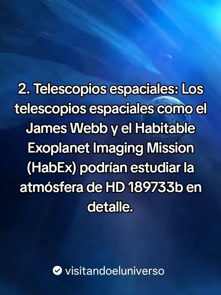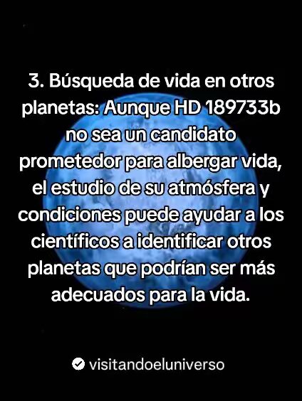 - Aunque HD 189733b no es un candidato prometedor para albergar vida, el estudio de su atmosfera y sus condiciones puede ayudar a los científicos a identificar otros planetas que podrían ser mas adecuados para la vida.