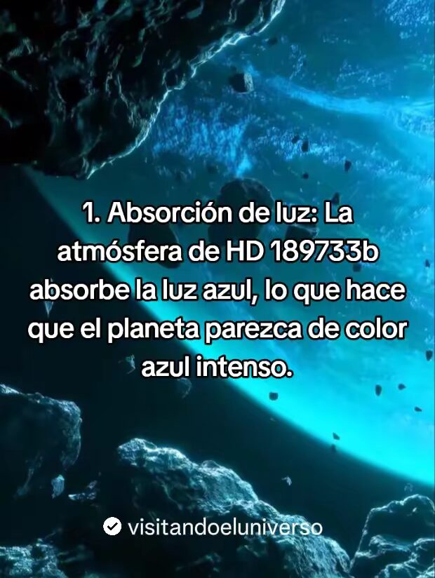 - La atmosfera de HD 18733b absorbe la luz azul, lo que hace que el planeta parezca de un color Azul intenso.