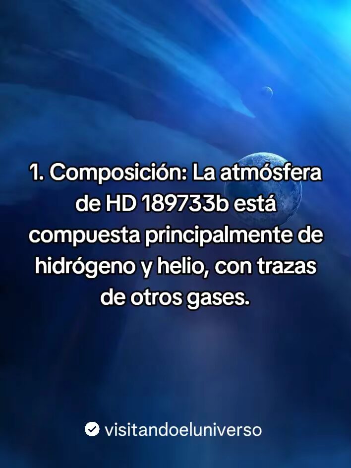 - La composición del planeta azul HD 189733b esta compuesta principalmente de hidrogeno y helio, con trazas de otros gases.