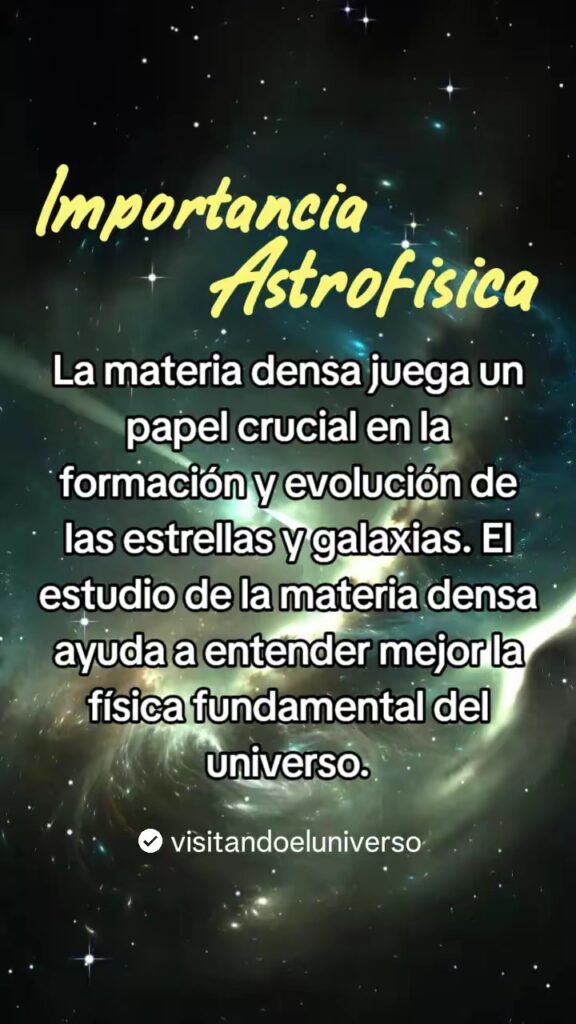 Importancia en la astrofisica: La materia densa juega un papel crucial en la formacion y evolucion de las estrellas y galaxias del universo. El estudio de la materia mas densa ayuda a entender mejor la fisica fundamental del universo conocido.