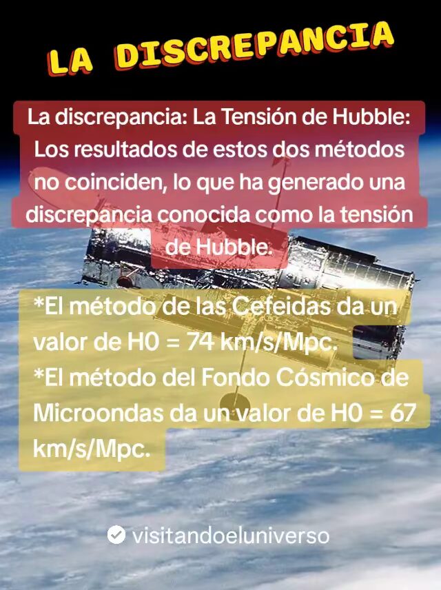 La discrepancia en la tensión de Hubble, es que los resultados de estos dos métodos no coinciden, lo que ha generado una discrepancia conocida como: «La Tensión De Hubble».