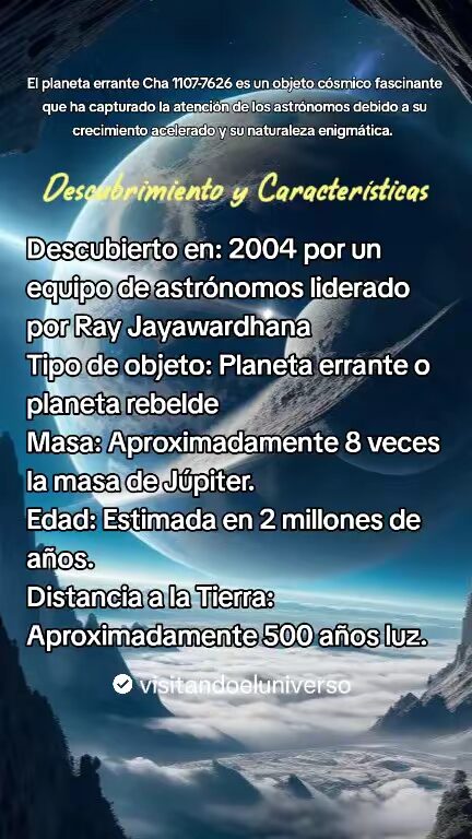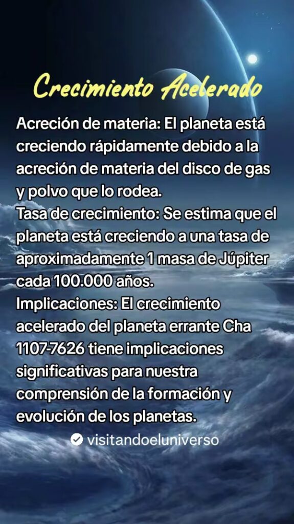 El Planeta Errante «Cha 1107-7626» es un planeta diferente e increiblemente fascinante, el cual a capturado la atencion de astronomos y cientificos de todo el mundo debido a su crecimiento acelerado y sus naturaleza enigmatica.