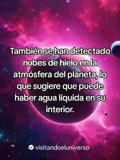 - Tambien se han detectado nubes de hielo en la atmosfera del planeta, lo que sugiere que puede haber agua liquida en su interior.