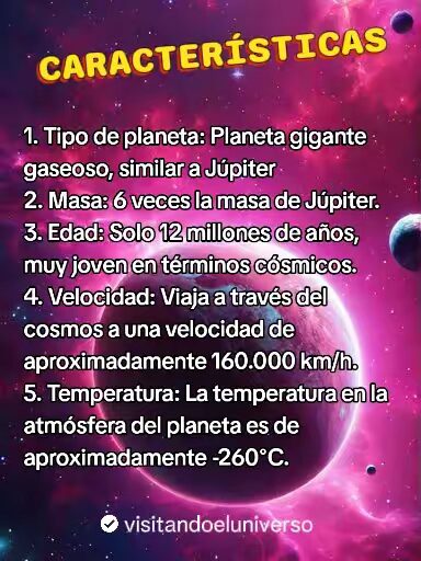 - El tipo de planeta es gigante gaseoso, similar a Júpiter.