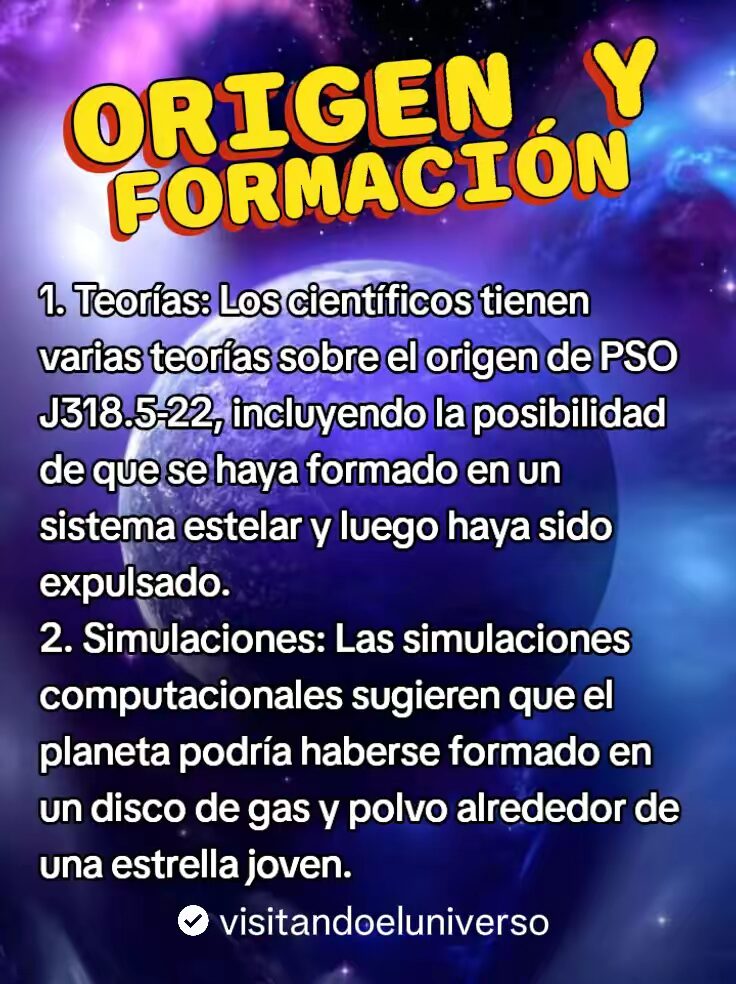 - Algunos científicos tienen varias teorias sobre el origen de este planeta, incluyendo la posibilidad de que se haya formado en un sistema estelar y luego haya sido expulsado.