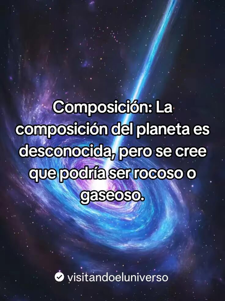 - Su composicion es desconocida, pero se piensa que podría ser rocoso o gaseoso.
