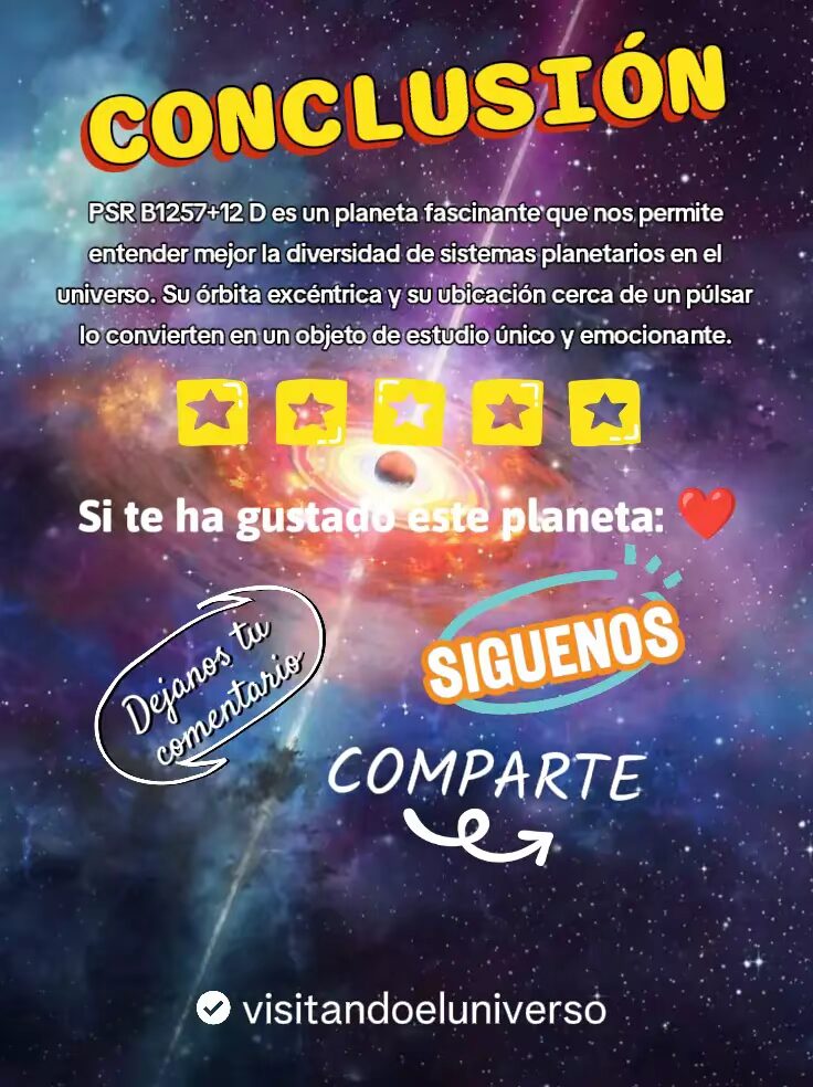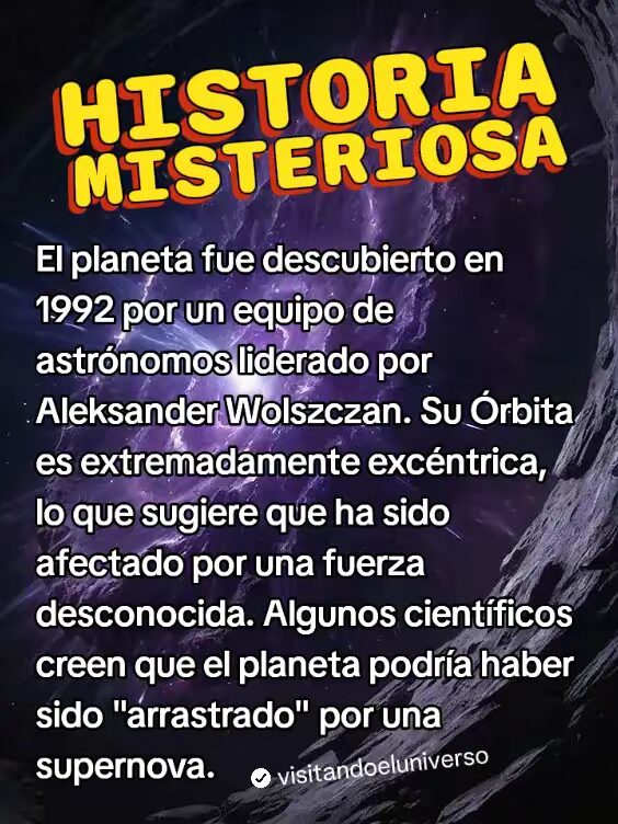 Es un planeta increíblemente fascinante aunque su composicion todavía se desconoce, nos permite entender mejor la diversidad de sistemas planetarios en el universo. Su orbita excentrica y su ubicación cerca de un pulsar lo convierten en un objeto de estudio único y emocionante.