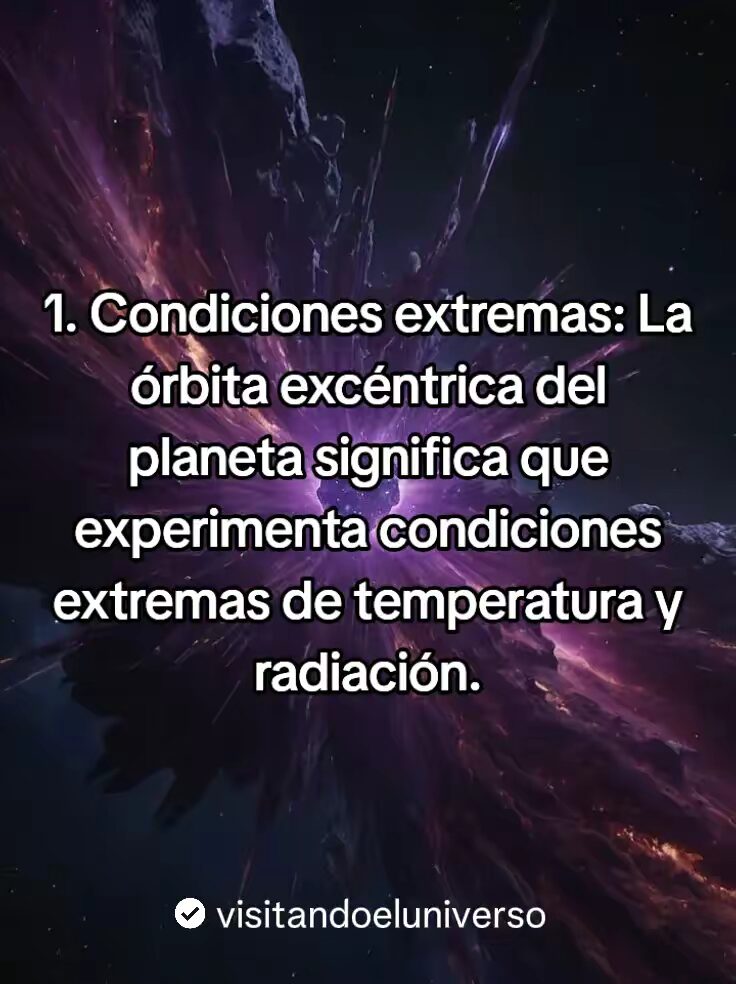 - La orbita excentrica del planeta experimenta condiciones extremas de temperatura y radiacion.