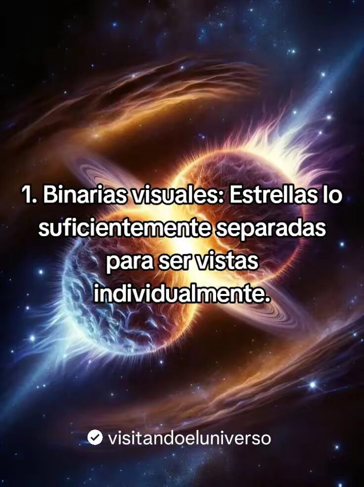 - Binarias visuales: Estrellas lo suficientemente separadas para ser vistas individualmente.