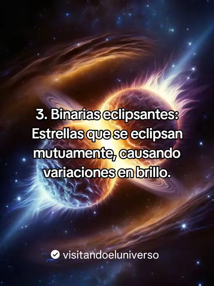 - Binarias eclipsantes: Estrellas que se eclipsan mutuamente, causando variaciones en su brillo.