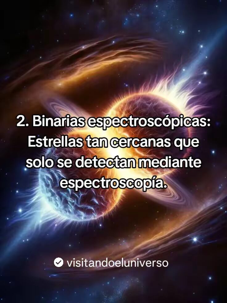 - Binarias espectroscopicas: Estrellas tan cercanas que solo se detectan mediante la espectroscopia.