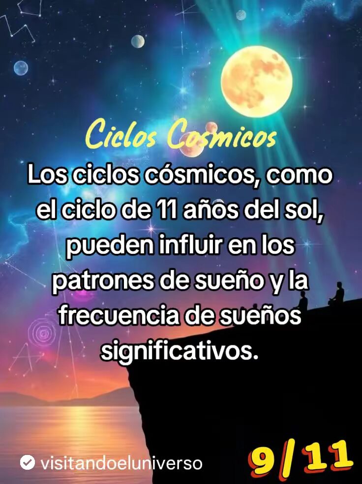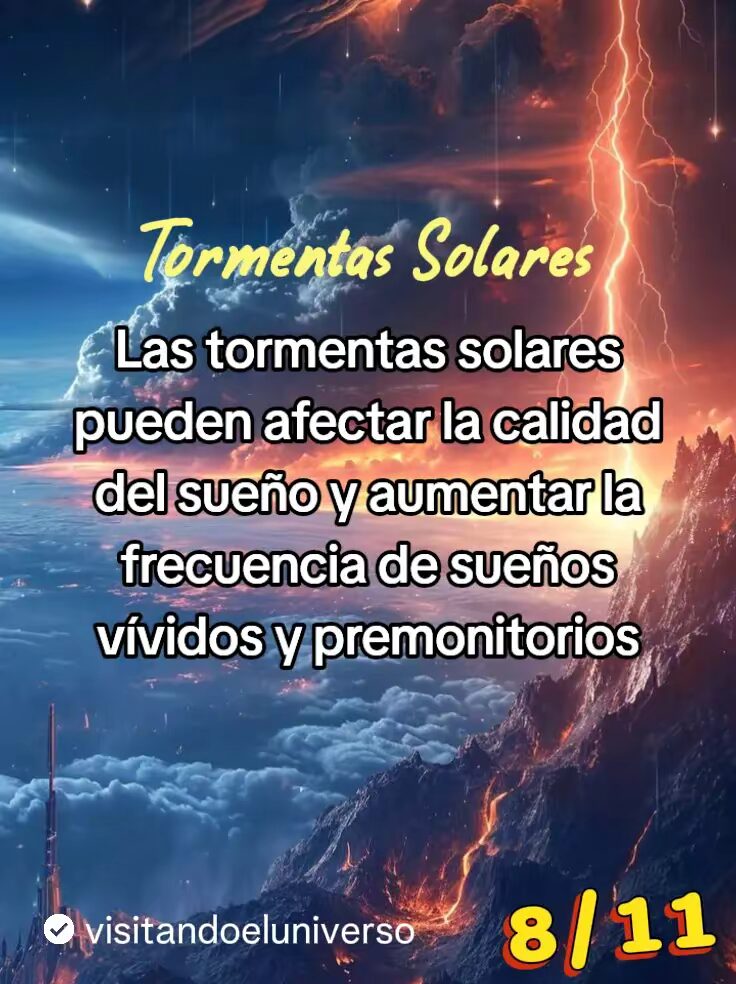Las tormentas solares pueden afectar a la calidad del sueño y aumentar la frecuencia de los sueños vividos y premonitorrios, a si como los ciclos cosmicos de cada 11 años del Sol, el cual tambien puede influir en los patrones de sueño y la frecuencia de sueños significativos.