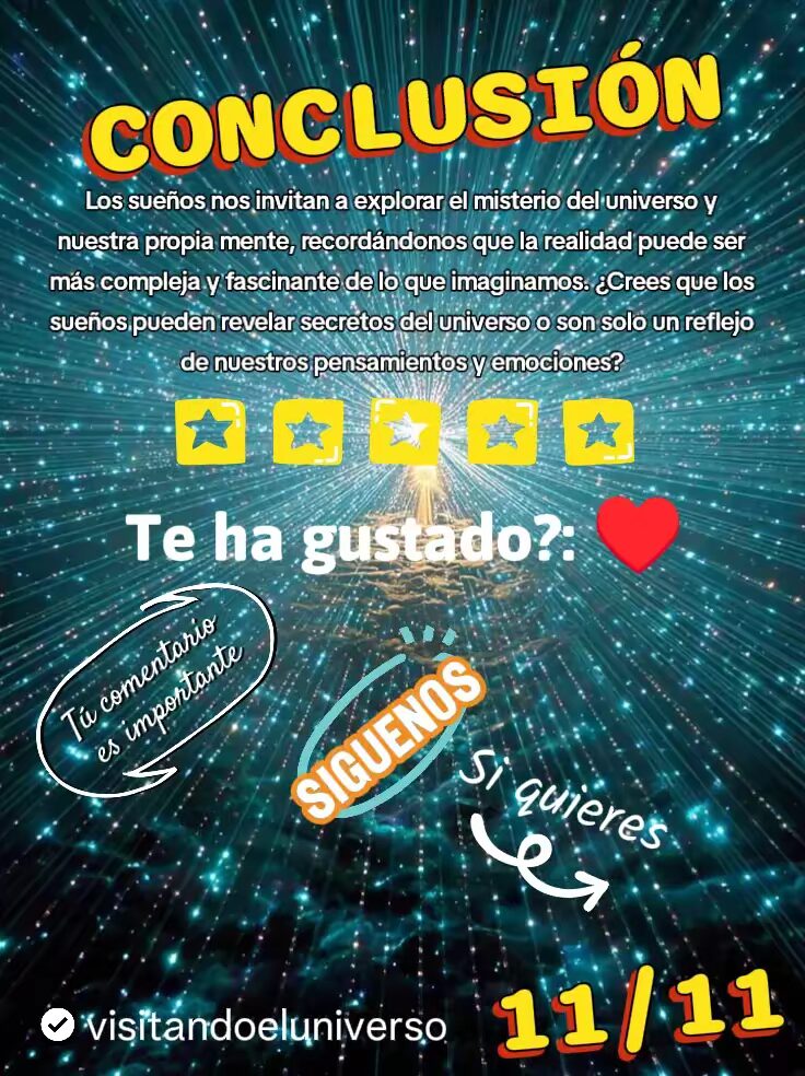 Conclusion: Los sueños son una ventana al universo, dejando un misterio cosmico en nuestra propia mente, recordandonoss que la realidad puede ser mucho mas compleja e increible de lo que imaginamos.
