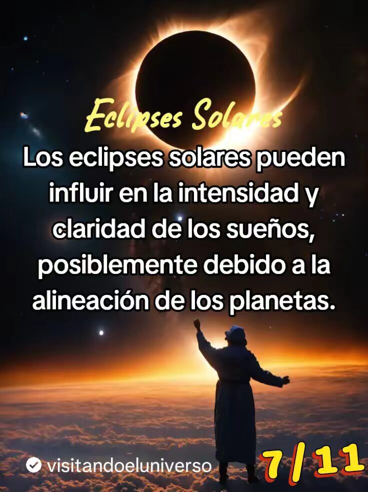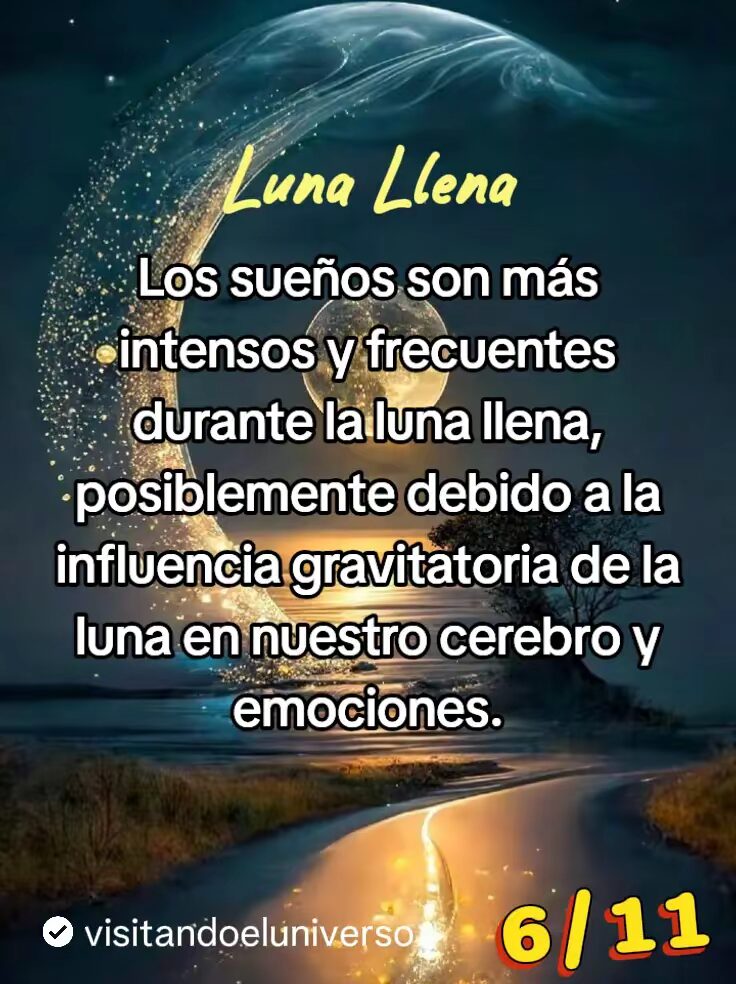 La luna llena hace que los sueños sean mas intensos y frecuentes, posiblemente debido a la influencia gravitatoria de la luna en nuestro cerebro, tambien asociada a las emociones. Los eclipses solares pueden influir en la intensidad y claridad de los sueños, posiblemente debido a la alineacion de los planetas.