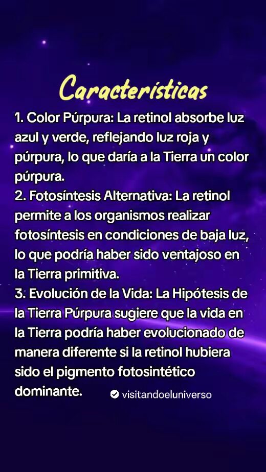 • La hipotesis de la Tierra Purpura sugiere que la vida en la Tierra podria haber evolucionado de manera diferente si la retinol hubiera sido el pigmento fotosintetico dominante.