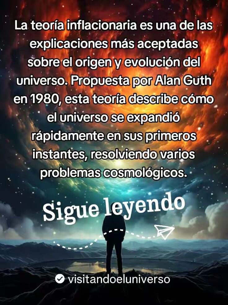 Una delas teoriasmas aceptadas sobre el origen y evolución del universo, es la Teoría Inflacionaria. Propuesta por Alan Guth en 1980, esta Teoria comenta como el universo se expandió rápidamente en sus primeros días, resolviendo varios problemas cosmológicos.
