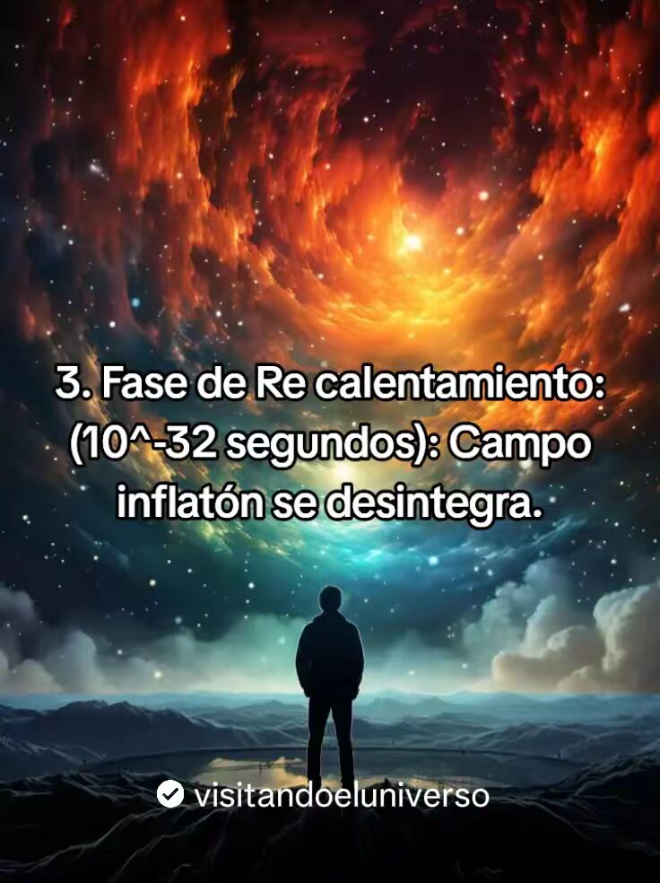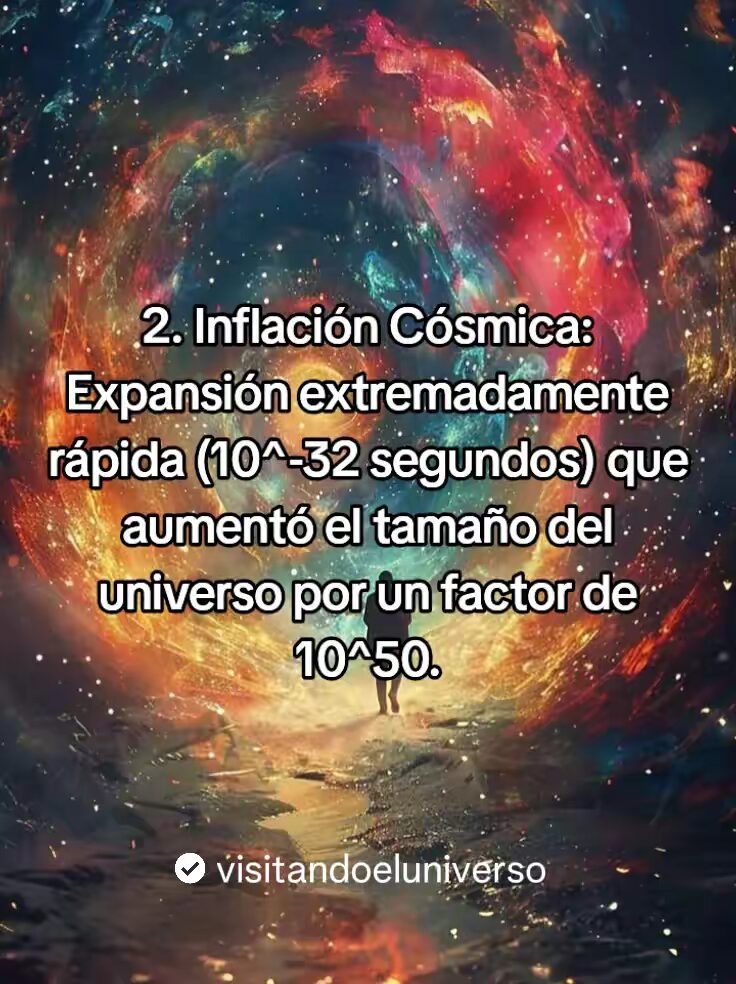 - La expansion extremadamente rápida (10ˆ32 segundos) que aumento el tamaño del universo por un factor de 10ˆ50.