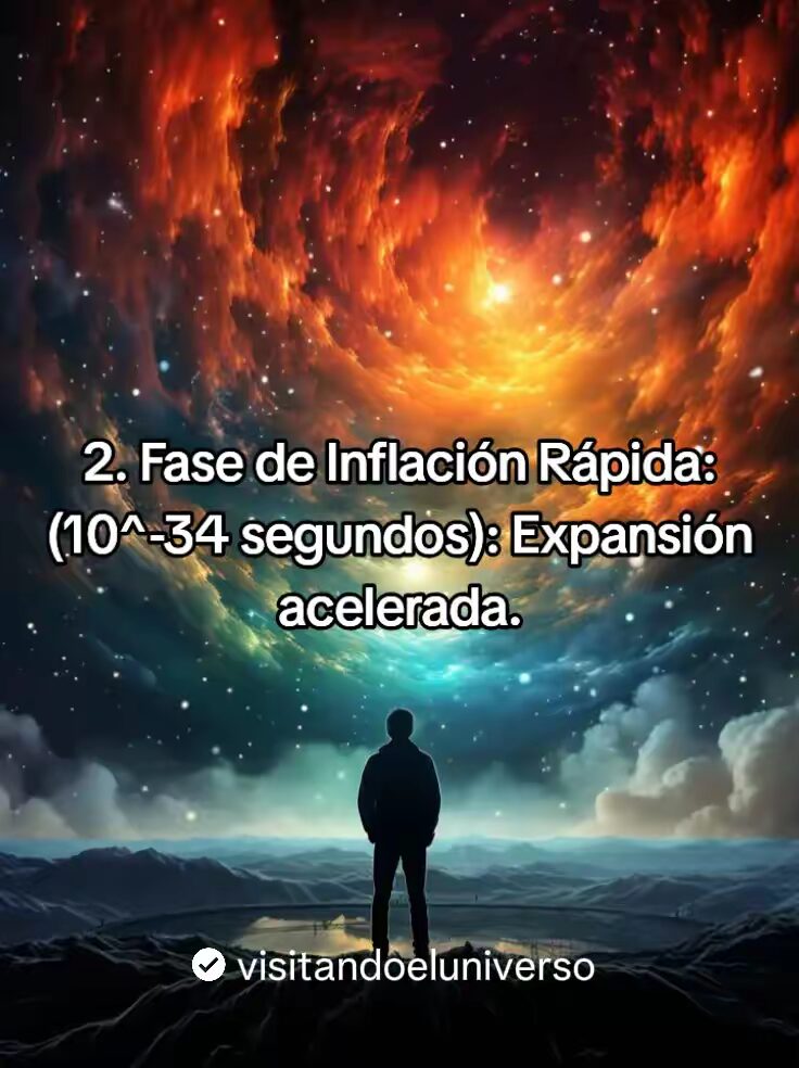- Fase de la inflación rápida: 10ˆ34 segundos, La expansión acelerada.