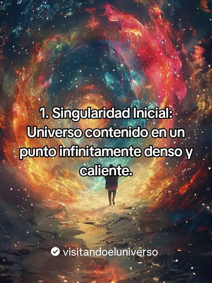 - La singularidad inicial, la cual describe como el universo contenido infinitamente denso y caliente.