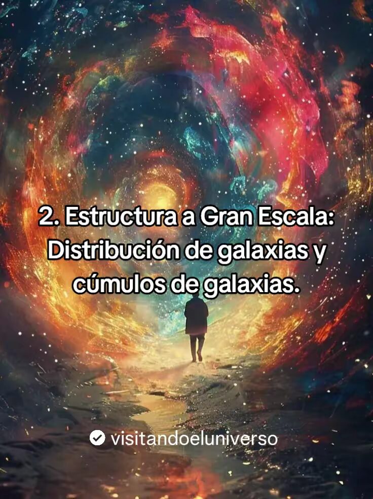 - Estructura a gran escala: Distribución de galaxias y cumulos de galaxias.