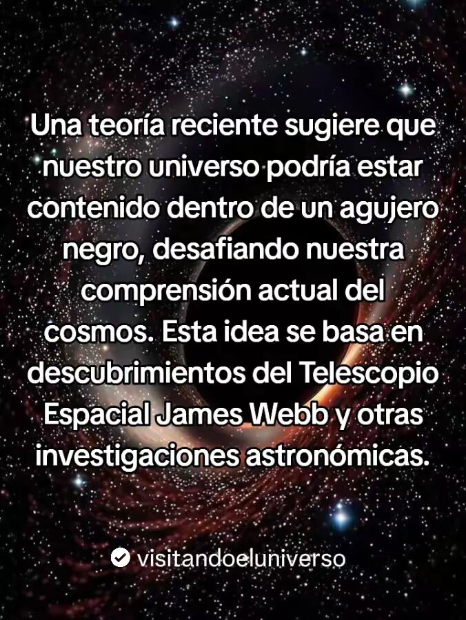 Una de las teorías mas recientes de este siglo es la de que nuestro universo podría estar contenido dentro de un agujero negro, a si desafiamos nuestra comprensión actual del cosmos. Esta idea se basa en descubrimientos del Telescopios Espacial James Webb y otras investigaciones astronómicas.