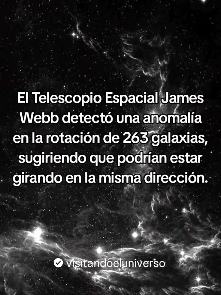 Despues de analizar 263 galaxias, el telescopio James Webb estudio las galaxias mas distantes para entender la formación del universo. Algunos de puntos de esta investigacion llevan a la posibilidad de que estemos dentro de un agujero negro ya que la anomalia detectada en la rotación de las 263 galaxias no es muy normal, ya que sugiere que podrían estar girando en la misma dirección.