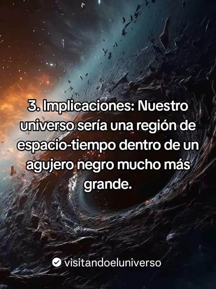 - Las implicaciones son que nuestro universo seria una región de espacio-tiempo dentro de un agujero negro mucho mas grande.