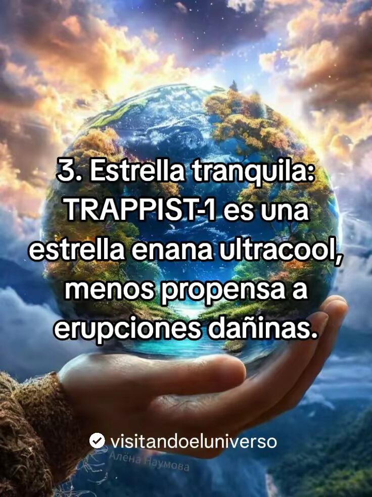 - Su estrella es como nuestro sol, TRAPPIST-1 es una estrella enana Ultracool, menos propensa a erupciones dañinas.