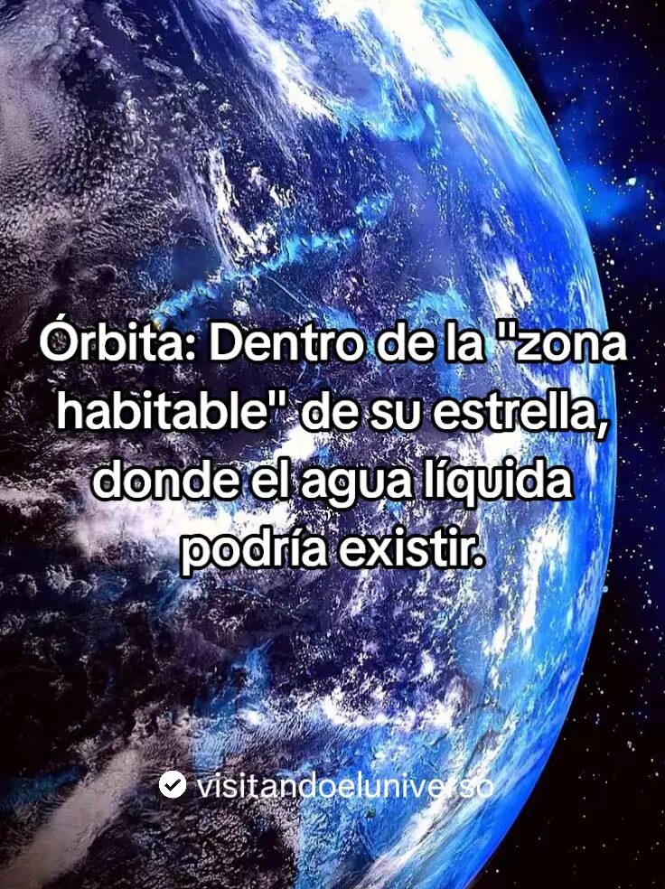 - Orbita: Orbita dentro de la zona habitable de su estrella, donde el agua liquida podría existir.